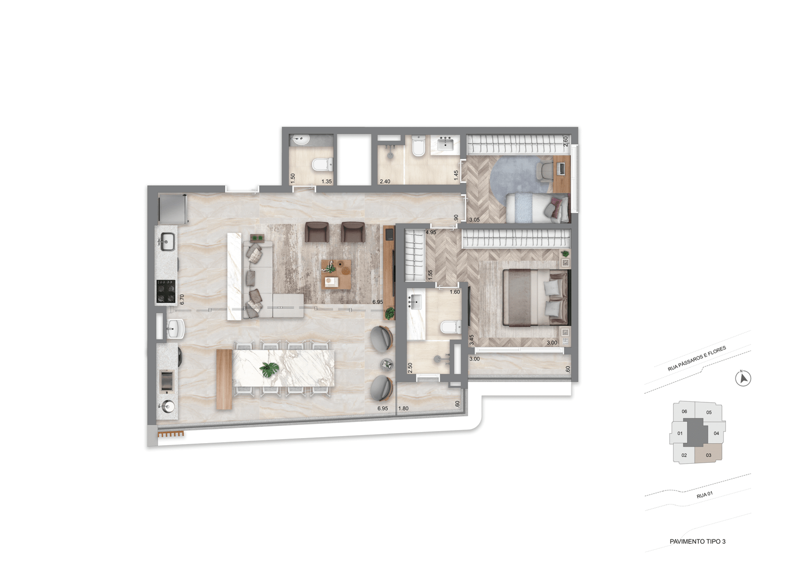 O empreendimento conta com um lazer completo, incluindo piscinas coberta e descoberta, spa, fitness, pool bar, brinquedoteca e pet place — um verdadeiro resort particular em meio à metrópole.