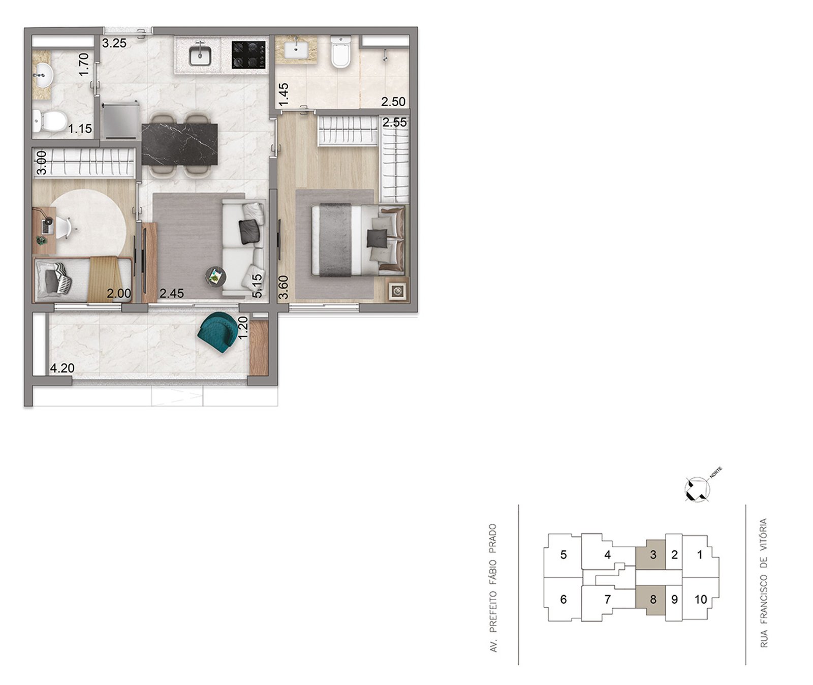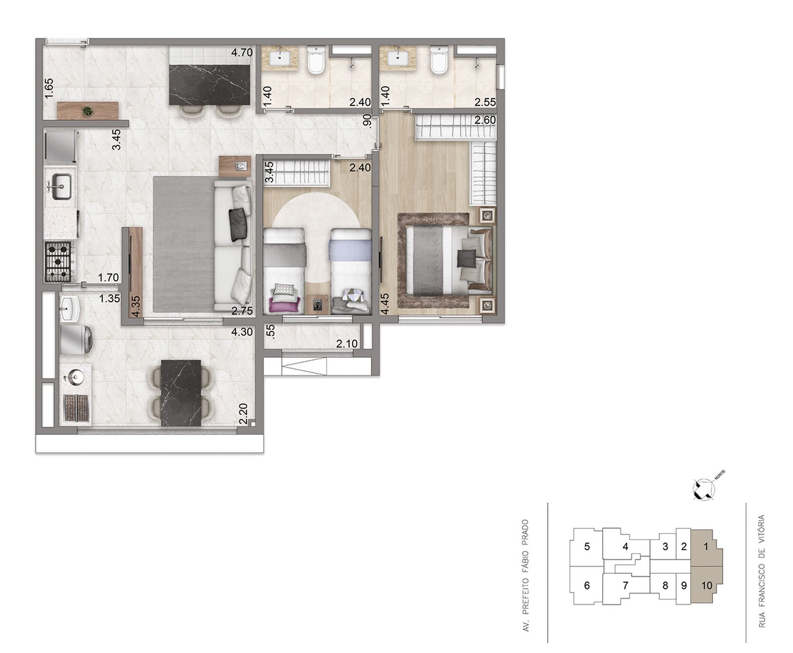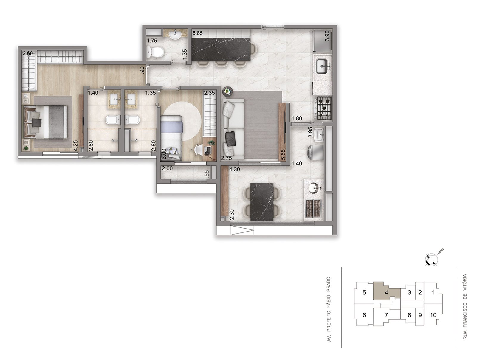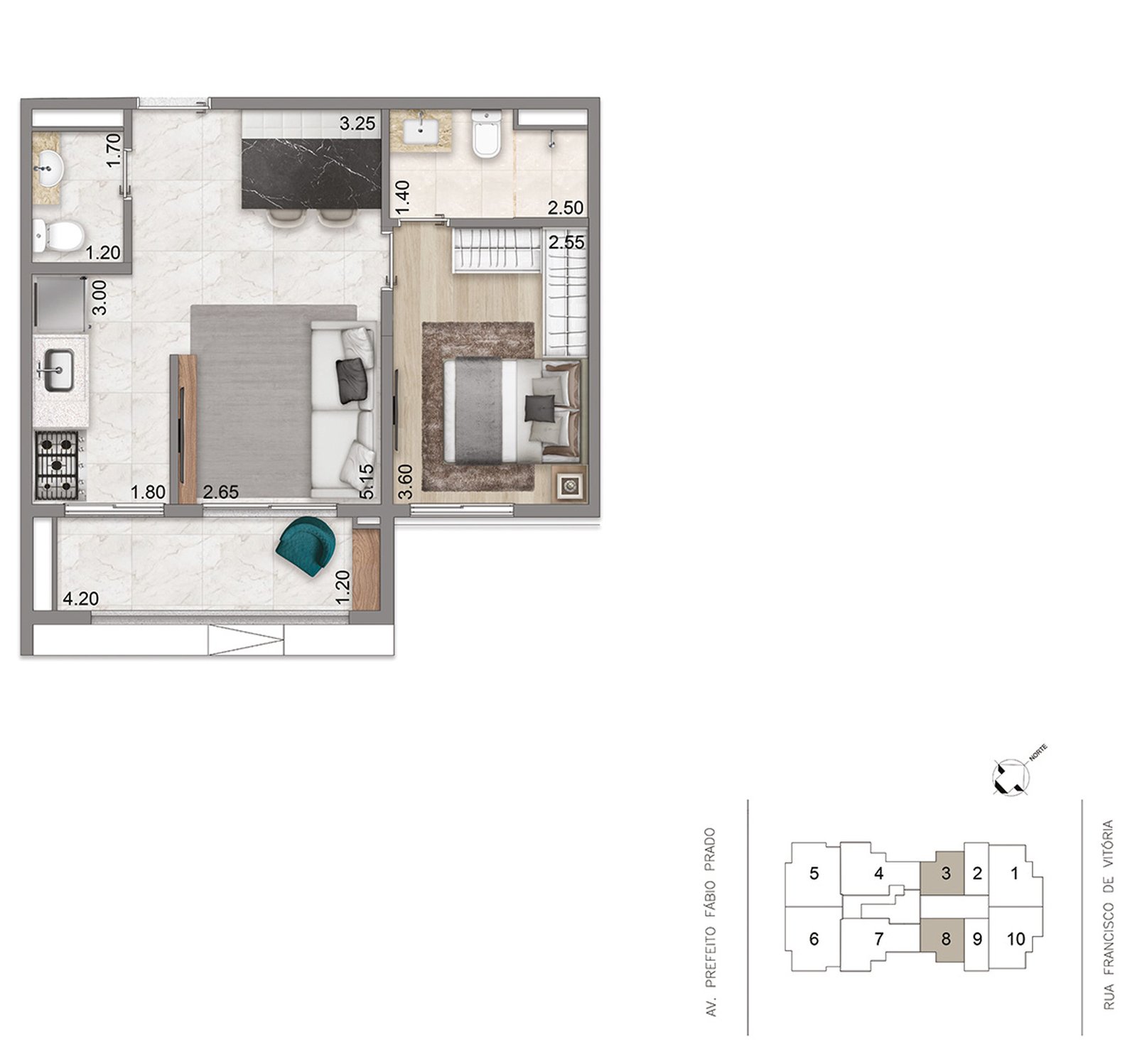 Com apartamentos de 46, 76 a 82 m², opções de compacto a 3 dormitórios e 1 a 2 suítes, o projeto foi pensado para quem busca exclusividade sem abrir mão da praticidade.